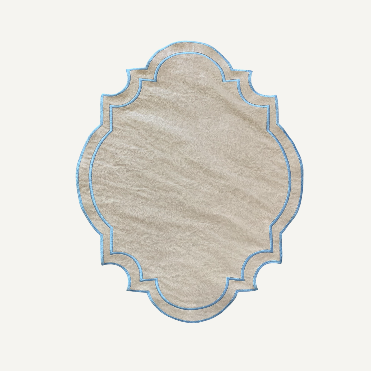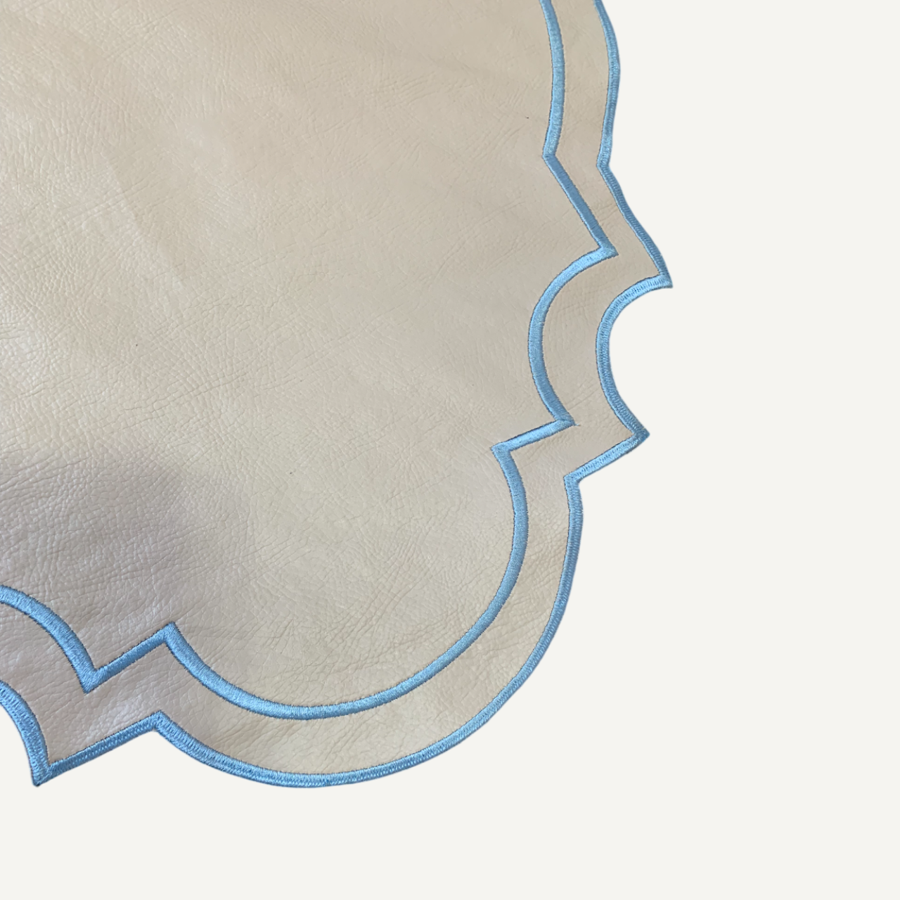 Confeccionado em corino impermeável, este jogo americano protege sua mesa com discrição e refinamento, enquanto sua segunda face em tela poliéster permite variar o visual de acordo com a ocasião. O acabamento em linha de seda adiciona um detalhe sofisticado que transforma qualquer composição em um cenário de alta classe.